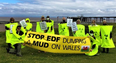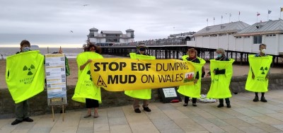 2 July 2020: Radioactive barrels go to Hinkley Point to highlight the fact that EDF are planning to dredge 600,000 tons of mud from the Severn Estuary containing historic nuclear particles which have been trapped in the sediments since the 60's onwards. They plan to dump the mud over in Cardiff