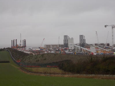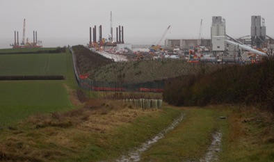 Hinkley C - not a site for sore eyes Once a month, EdeF lay on a visit to the HPC site for the general public. SH member Roy Pumfrey joined the December group. There were supposed to be 13 of us but only eight braved a dismal morning. My bus pass was sufficient photo ID to get me on the Tour. In EdeF's Bridgwater office, it was like security at an airport. Had we got any guns, explosives, drugs, sharp implements? As if the site we're visiting, if completed, won't present more hazards than any we could possibly take there. Before setting off, some background info. EdeF supplies 20% of UK electricity and, through its nuclear reactors and surprisingly extensive wind farms, half of the low carbon electricity. It has 15,000 UK employees. Hinkley A took from 1957 - 65 to build, generated from 1965 - 2000 and will 'mostly' be decommissioned by 2026. Currently requires 430 staff. Hinkley B was built from 1967 - 1975 and started generating on 5 February 1976. Potentially, it will keep going until 2023, long past its sell-by date. About 785 people work there. No figures (these were old slides) for Hinkley C, apart from construction starting 2016, generating 7% of UK electricity, providing 25,000 jobs during construction with 900 to run the finished station. No one knows why the site is so big compared to B or A. There is no mention of the highly radioactive waste generated or that it will have to be stored on site. The official Edef Guides are trained for visits to Hinkley B, so we were in the hands of our minibus driver. Small world that it is, I used to work with this guy! He takes lots of visitors to HPC - VIPs, MPs, and Councillors as well as lots of EdeF staff. Indeed, there is an EdeF guy in the back hitching a ride with a couple of other folk who talks to them at the same time as the driver is talking to us. En route, the driver talks about Traffic Management of the thousand and more HGVs that will converge on the site on a daily basis. The roads are clogged now. HPC will be late simply because the lorries can't get there. We go through more security to get onto the site. It is vast, the equivalent of 350 football pitches, and a sea of mud as far as the eye can see. It's hard to reconcile what's there today with the wooded site dotted with old farmsteads which SH members occupied back in 2012. A case of 'shock and awe’. Let's remember how the last 'shock and awe' turned out - a war in Iraq that created so many more problems than it solved. The first thing to see was that the Asbestos Remediation (asbestos waste from Hinkley A dumped and covered for 50 years and now being removed to make way for HPC) is still not complete. A Planning Application made in 2011, overrunning by at least four years. A taste of things to come. Our tour continues towards the beach. The driver points out the site of the water intakes/outfalls that will go up to 3.3 km into the Bristol Channel. Work has begun on the Decoupling Wall to protect the building of the new sea wall that will supposedly protect the site from sea level rises. There is more to see around the Concrete Batching Plants at the end of where the jetty will be. There are two and there will be two more. They will produce 'nuclear grade' concrete and have the capacity for 72 hour pours at peak. Continuous pouring is supposed to prevent the variable concrete quality that has bedevilled Olkiluoto in Finland. Surprisingly, the driver concurs that first concrete will be poured in Quarter 1 of 2017. This is what we’ve recently heard elsewhere from EdeF. It’s hard to believe bearing in mind all that has to be done before any concrete is poured. Turns out this is only concrete to make the ‘galleries’, the miles of underground service tunnels carrying cabling etc Supposedly, 80% of the aggregates required to make all the concrete will come by sea from the Port of Bristol at Avonmouth. Of course, they’ll have to come by road from the Mendip quarries to get to Avonmouth and by road across Wales to get to ports on the Welsh coast. The first steps in making the jetty for unloading the sea-borne aggregates involve a ‘Wave Walker’ barge that can come up the beach to drive piles for the jetty. Spray concrete is also required to support the sides of new structures and we see one of the batching plants for this. We trundle past the ‘Bat House’, another token gesture of environmental concern, close to the Green Lane across the site. This ancient trackway will become the southern boundary of the HPC site, if it’s ever completed. Everything south of it on EdeF’s glossy pamphlet diagrams – site operations building, a welfare block and the massive hostel blocks – will be cleared and ‘returned to original use’. One other punter asks what use it will have. The driver is unsure as ‘farmland’ seems highly unlikely. I express disappointment that all of the accommodation at the site and in Bridgwater will disappear when the project ends. The EdeF guy at the back of the bus chips in that it will be dismantled and used at Sizewell. Not much help in a locality, just like most places, short of housing. My neighbour on the minibus turns out to be someone I know from Cannington. His surprise is the hilly nature of the site – he was expecting more of a plateau – and the work EdeF has to do to level it. The whole of the Holford Valley, after the brook there has been put in a culvert, will be filled in with more than five million cubic metres of earth cum spoil. Water management is also a huge issue for the project and we see the site of the silt lagoons that will be used to separate water from soil. We pass Doggetts Farm, just outside the site boundary. The driver tells us that the owners wouldn’t sell but didn’t want to stay, so EdeF are renting the property for the duration of the project. Other people in Shurton, the hamlet closest to the southern boundary bund, haven’t fared so well. EdeF has bought 14 properties – some say at low valua