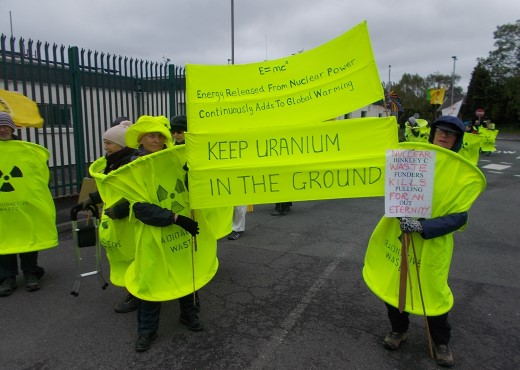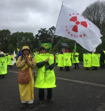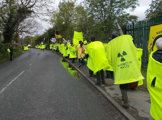 Katy Attwater and other colleagues from Stop Hinkley supported the demonstration at Springfield in Lancashire. This site imports raw mined Uranium from all over the world and processes it into fuel rods for nuclear power stations and weapons grade uranium for war heads. These are then exported back all over the world to the Arabs, the Russians, the Chinese, et al. The UK is one of the main players in this game/industry. The Nuclear Industry is claiming to be our saviour against Climate Change. What they aren’t telling us is that the Nuclear Fission Process in all the power stations all over the world is releasing massive amounts of energy/heat from the splitting of the atom in their reactors.