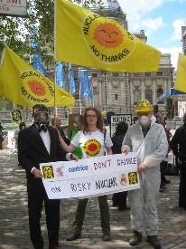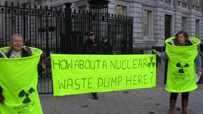 We handed out fliers with an ethical solution to the nuclear waste; being pumped direct to under floor heating systems in each house, 'having your share of electricity entitles you to your share of the waste,' we dropped one off to DECC to consider alongside all their other mad brained ideas.