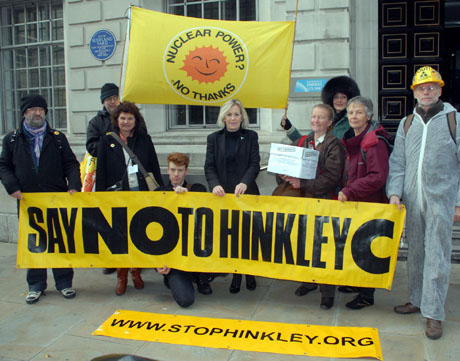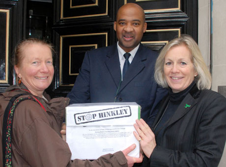 We, the undersigned, strongly oppose the plan by EdF to construct a new nuclear power station at Hinkley Point in Somerset. Instead, a government-backed programme of energy saving and clean renewable energy would combat climate change and avoid the risks of a catastrophic accident, dangers to health and the storage of highly radioactive waste at Hinkley for 160 years.